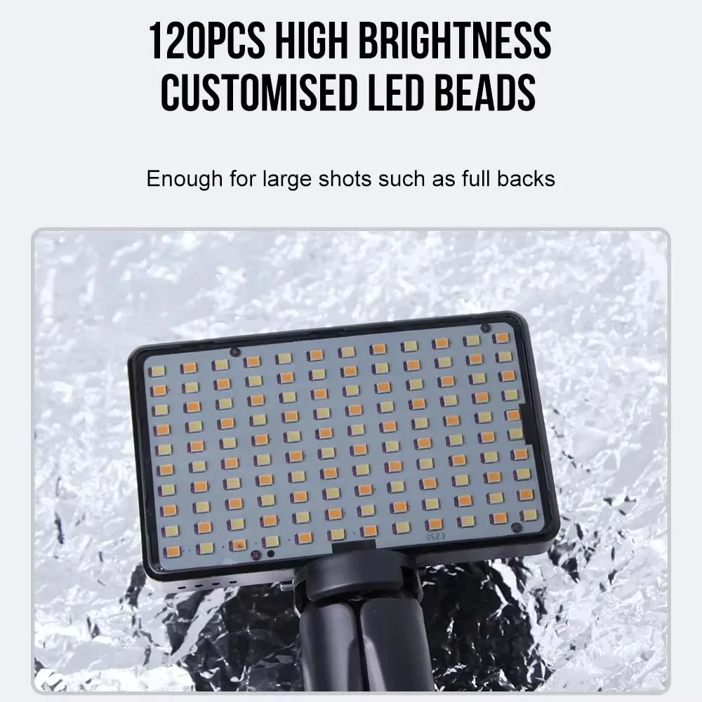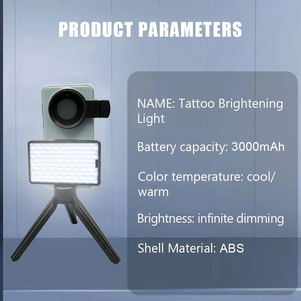 1. Light and Battery: 120 high brightness custom LED beads can be used for large-scale tattoo shooting such as full back. Equipped with a built-in 3000mAh battery, it can last for more than 3 hours of use.
