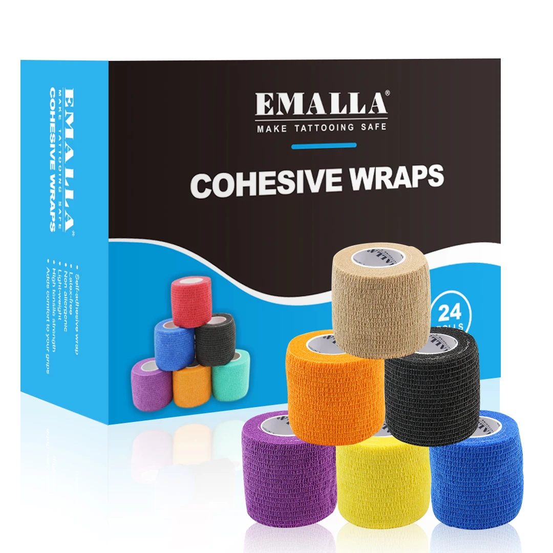 Emalla-bandagem auto-adesiva para tatuagem, capa de proteção, não tecido, impermeável, para dedo e pulso, acessórios de tatuagem, 24 peças