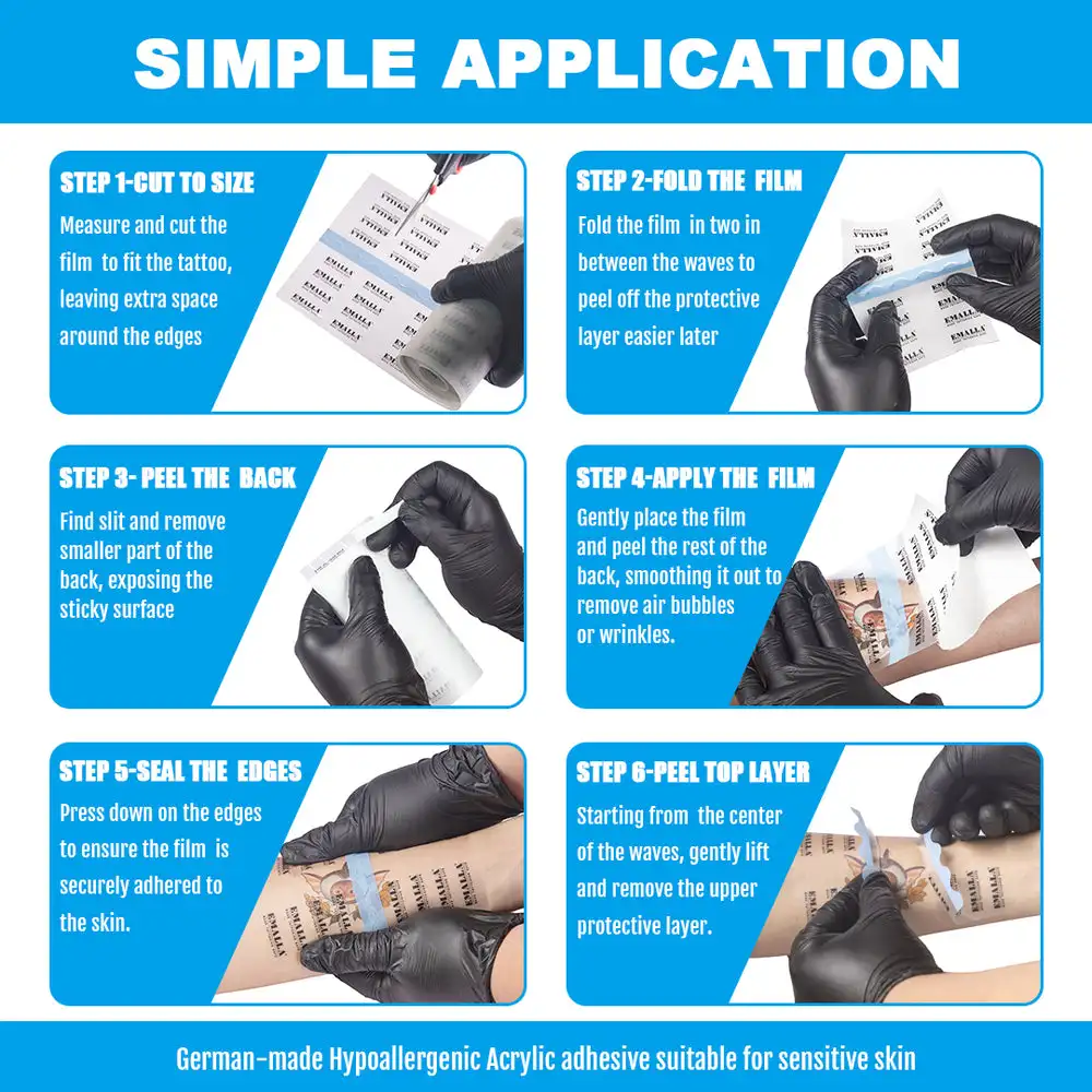 O filme de proteção de tatuagem EMALLA Grece pode proteger bem suas novas tatuagens e pele.