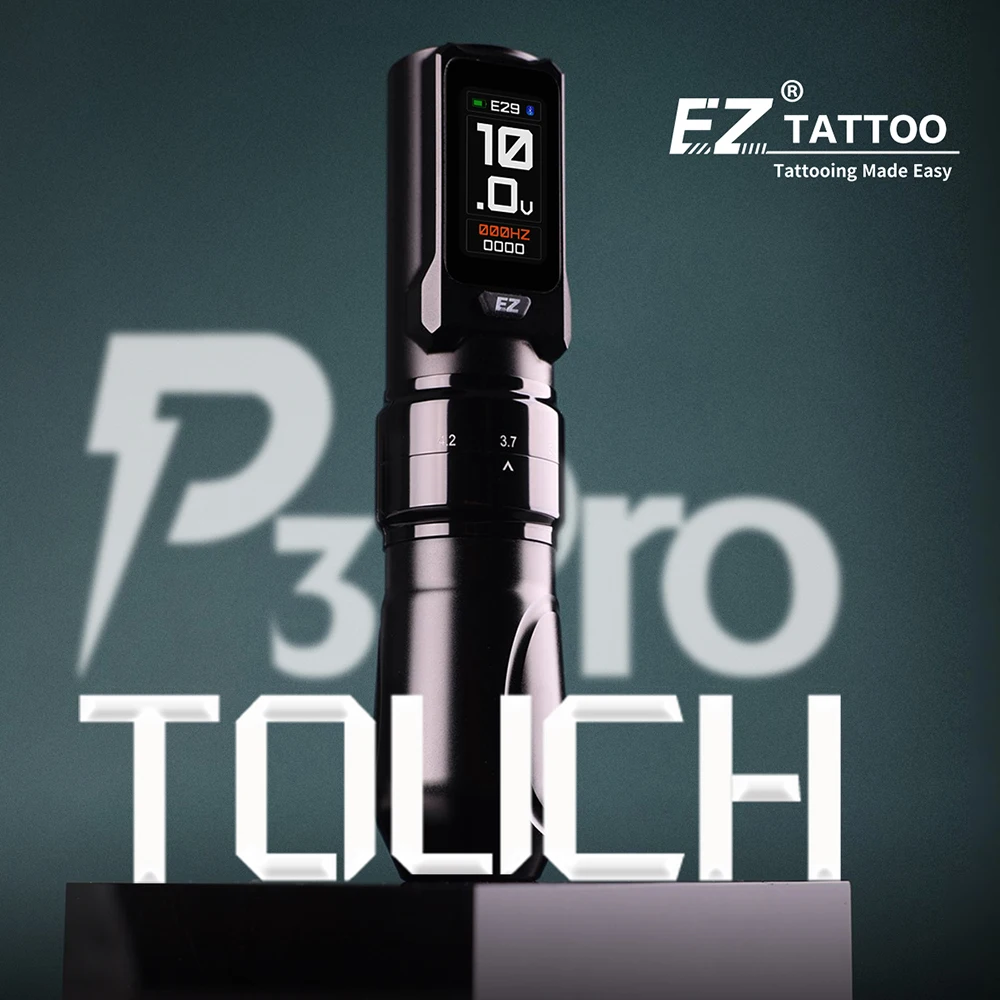 O EZ P3 Pro Touch é a mais recente evolução da série P3 Pro - agora atualizado com um módulo de alimentação de tela sensível ao toque totalmente novo e funcionalidade aprimorada para profissionais de tatuagem modernos.