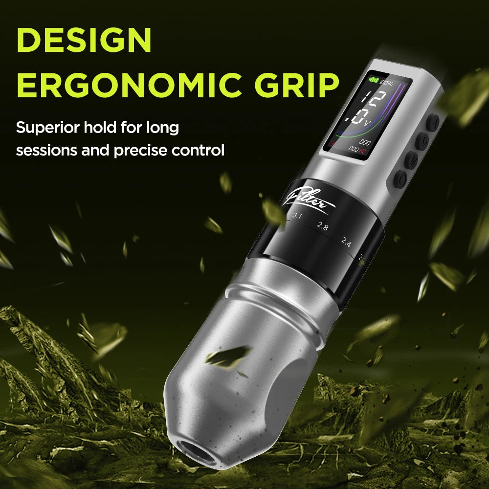 Projetado para tatuadores profissionais, o X30 se destaca em forro, sombreamento e mistura; Seu design sem fio oferece liberdade e controle para resultados de alta qualidade.Funciona sem fio por até 7 horas; A tela inteligente atualizada melhora a visibilidade e a experiência do usuário.