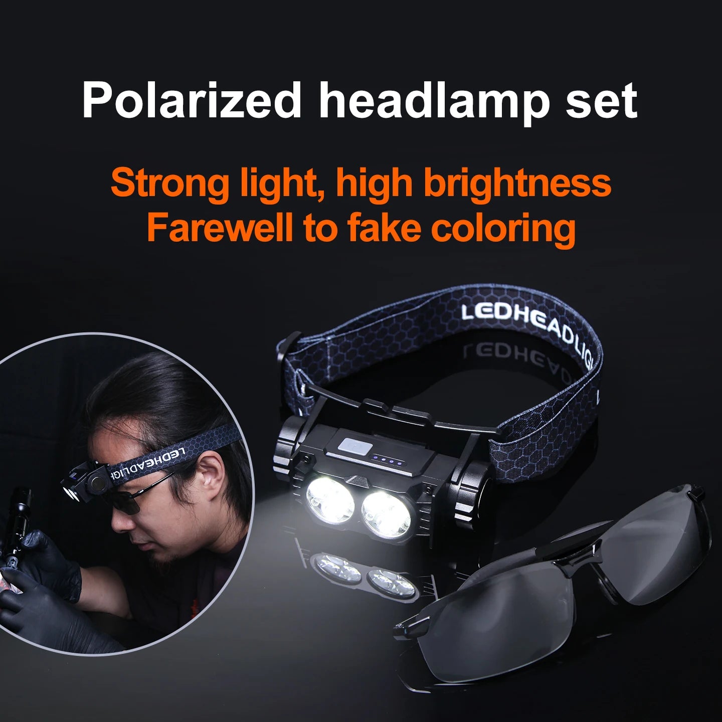 Luz para trabalho de tatuagem, óculos polarizados, lâmpada LED usada na cabeça, eliminar reflexos