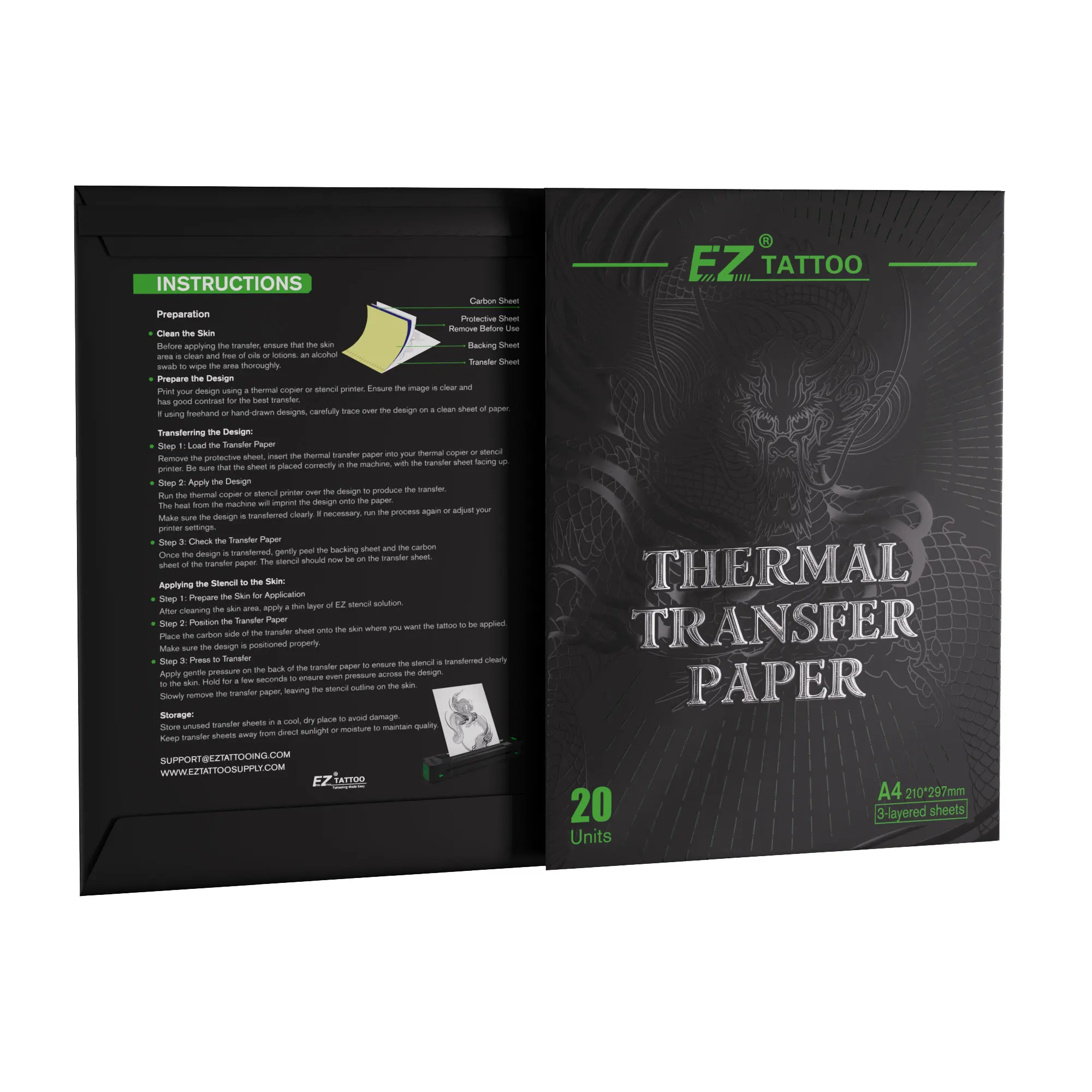 Papel de transferência de tatuagem ez, 20/50 peças, tamanho a4, copiadora térmica, papéis de estêncil para máquina de transferência de tatuagem, acessórios de papel