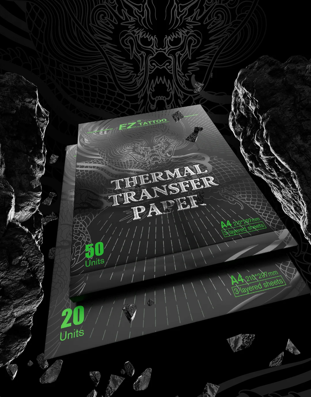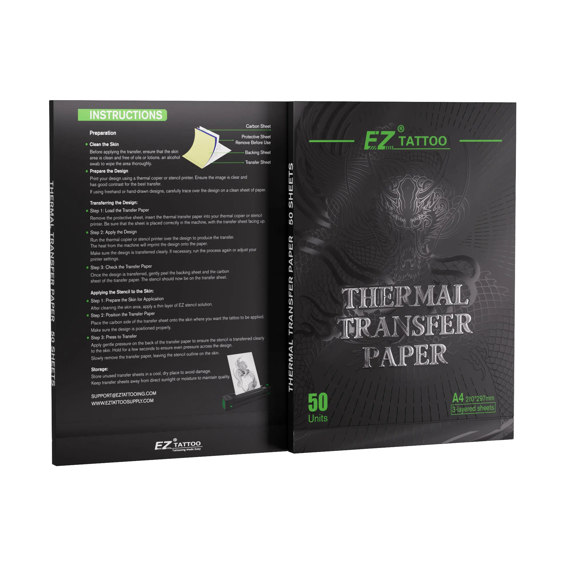 The EZTATTOO Thermal Transfer Paper is a professional-grade purple dye stencil paper that creates long-lasting stencils. This thermal paper is trusted for its exceptional quality and value, and can be used with any thermal printer.