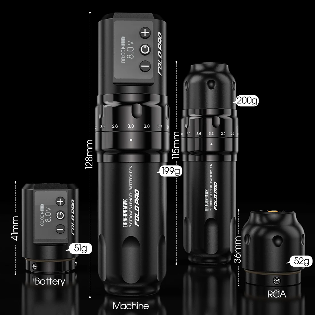 Dragonhawk Fold Pro Wireless Pen Machine 2.4-4.2mm Strokes Comprimento mutável.