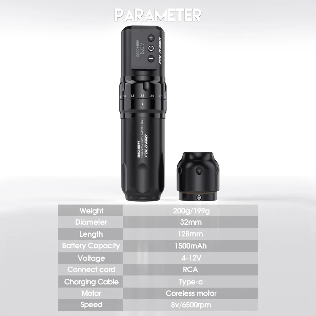 Alta capacidade de bateria: Com 1500 mAh que significa artista pode usar máquina fazendo longa duração de trabalho de 4-6 horas. E quando o esgotamento de energia, o conector RCA pode ser substituído.