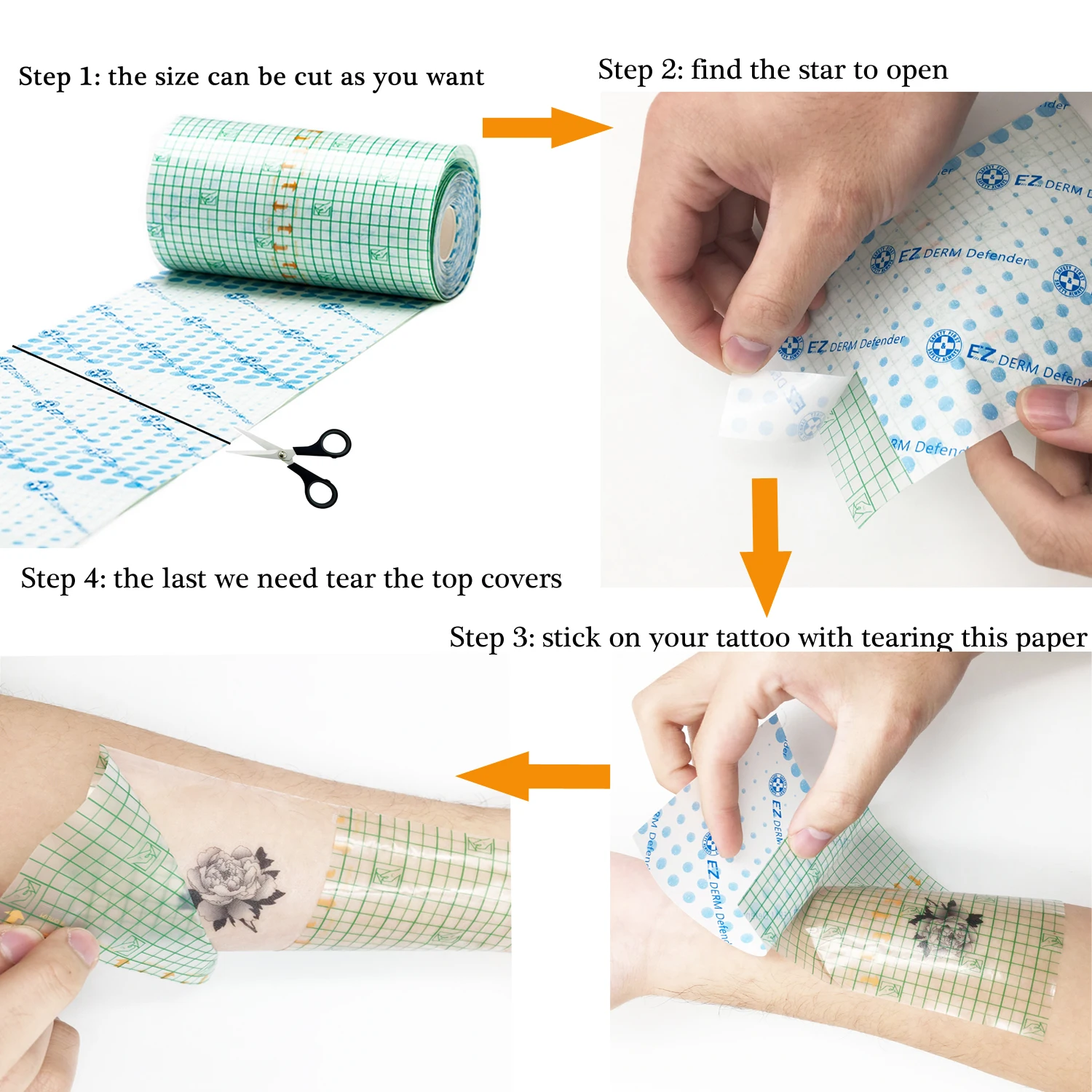 EZ Derm Defender Tattoo Adhesive Protective Shield é especialmente projetado para fornecer sua rápida recuperação durante o estágio de cicatrização da ferida de tatuagem.