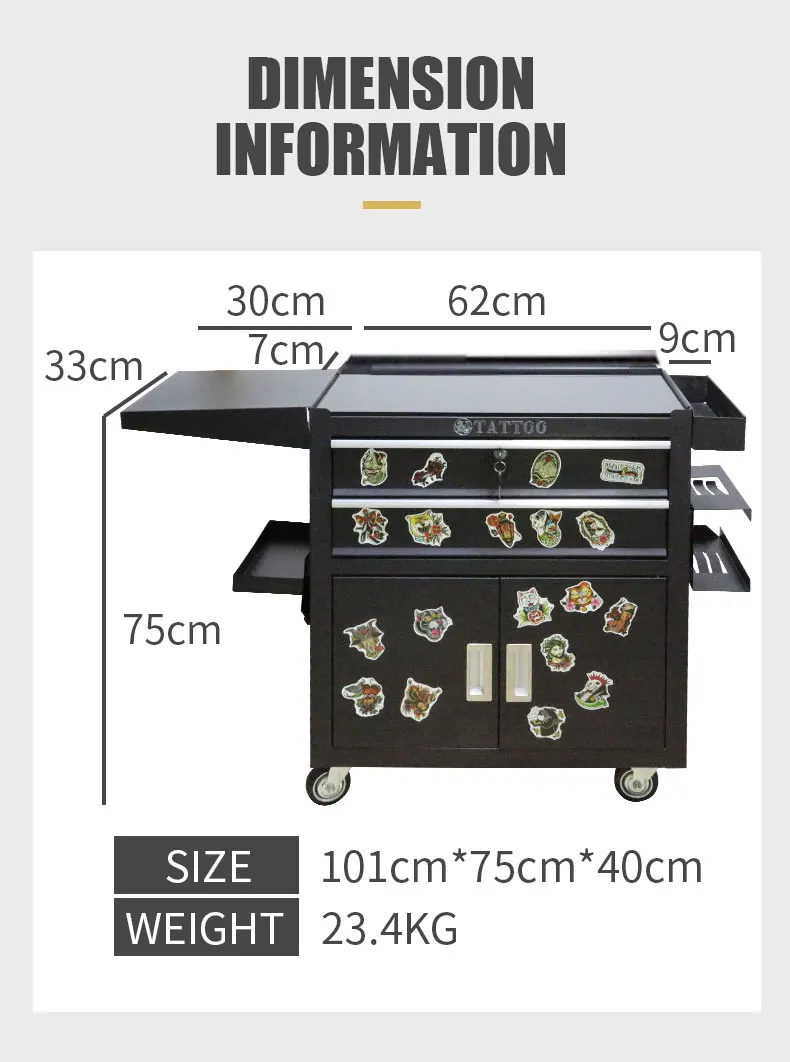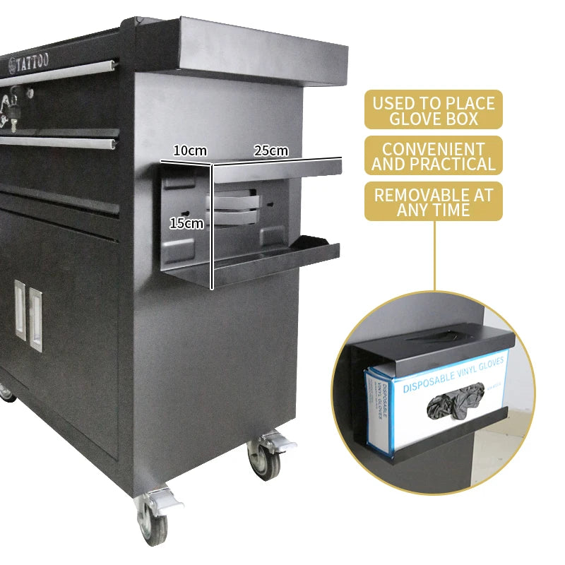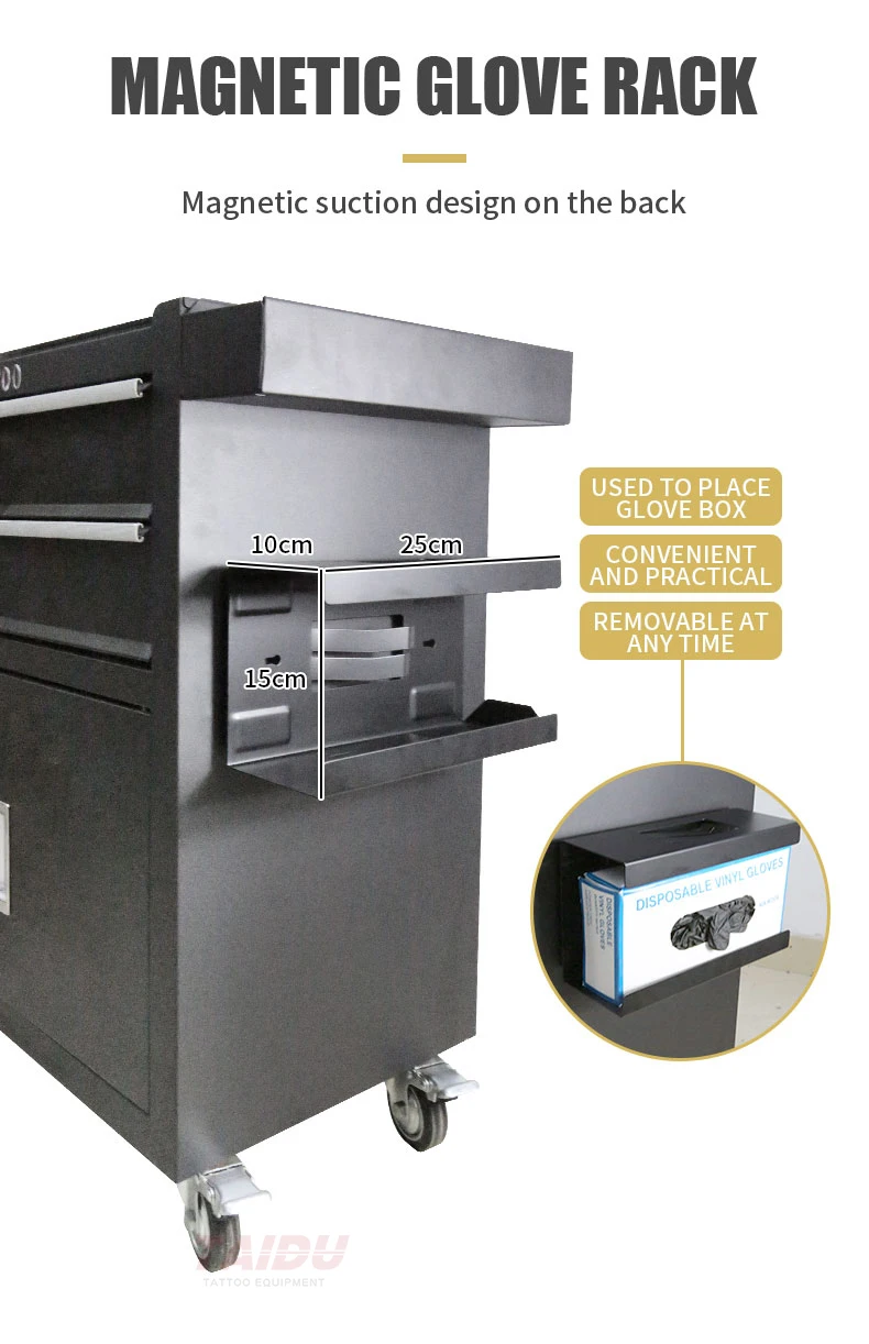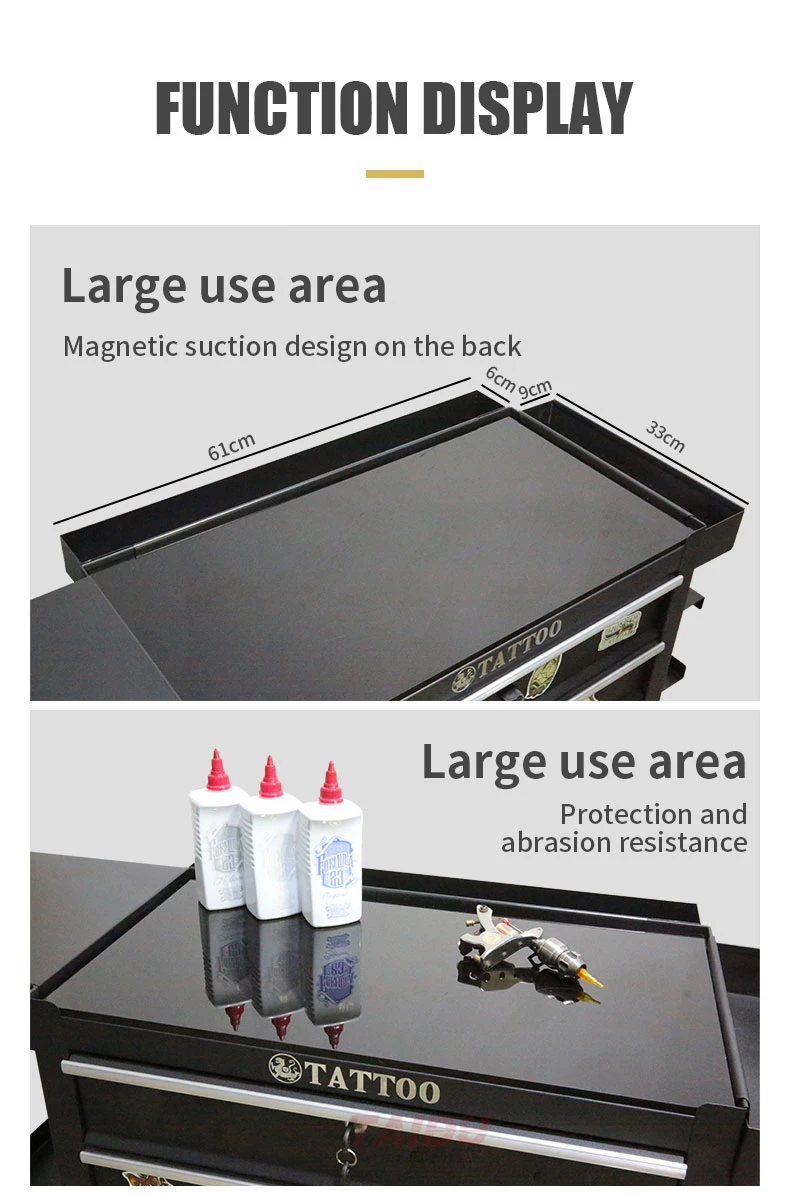 1.Espaço de armazenamento durável e grande: este carrinho de tatuagem é feito de aço laminado a frio de alta qualidade.Durável e firme.A pintura preta pode evitar arranhões superiores e elevações.As duas gavetas superiores e o armário inferior funcionam como armazenamento de tintas de tatuagem, máquina de tatuagem.