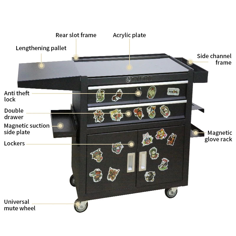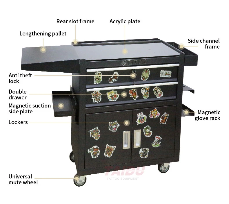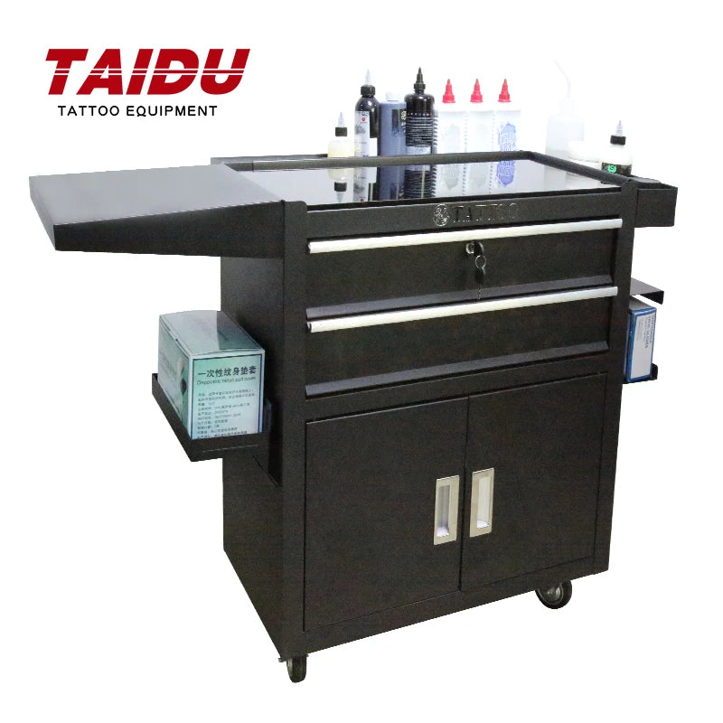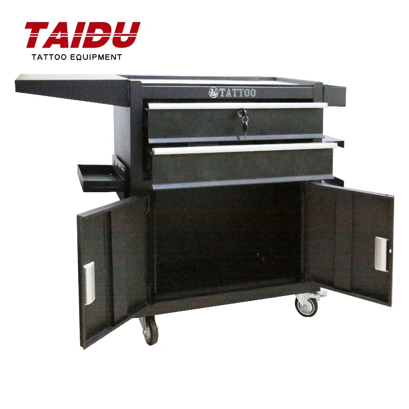 Taidu carrinho de ferramentas de tatuagem com duas darwers caixa de ferramentas de tatuagem estação de trabalho com roda universal caixa de ferramentas de tatuagem de aço equipamento de tatuagem