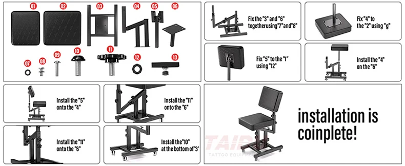 1.CADEIRA DE TATTOO MULTIFUNCIONAL: A cadeira de tatuagem TAIDU pode ser ajustada de qualquer maneira, usada como cadeira diária, bancada de tatuagem, suporte de mão de tatuagem, ajudando os tatuadores a completar tatuagem de braço grande, tatuagem de braço pequeno, tatuagem de peito, tatuagem de costas, pode ser usada como mesa de ferramentas de prática de tatuagem, adequada para tatuadores e iniciantes.